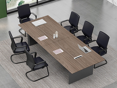 風格與辦公區整體保持一致,簡約時尚更實用,省卻復雜的形狀配置,采用經濟實用型會議臺,走線與收納功能完善、配有多功能插座,滿足無障礙會議討論需求。